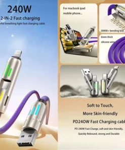 Gone are the days of carrying multiple cables for different devices. With the 4-in-1 design, you can easily switch between devices without hassle. Whether you’re charging your iPhone or your friend’s Android phone, this cable does it all. Fast Charging, Anytime, Anywhere