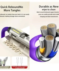 At 1.2 meters (approximately 4 feet) long, this cable provides the perfect balance between reach and portability. It’s long enough to use comfortably in most situations, whether you’re at home, in the car, or at the office, but still compact enough to carry with you.