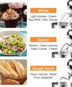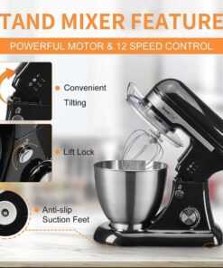 [POWERFUL MOTOR ] 400W high performance pure copper motor and sturdy ABS housing; with 12 speed settings, access to multipurpose and a variety of recipes. [4.8Qt CAPACITY STAINLESS STEEL BOWL] 4.8Qt Stainless steel bowl can meet all your kitchen needs. The Stand Mixer is easy to use for making cakes, breads, cookies, pastry, muffins and waffle, and the dual handles are more convenient to hold. [TILT-HEAD DESIGN] The tilt-head design mixer allows access to install or uninstall bowl and accessories easily. [MULTIPLE ATTACHMENT SET] Geek Chef stand mixer comes with three mixing accessories: whisk, dough hook, mixing beater.The splash guard with access hatch helps add ingredients without making a mess.Only logged in customers who have purchased this product may leave a review.